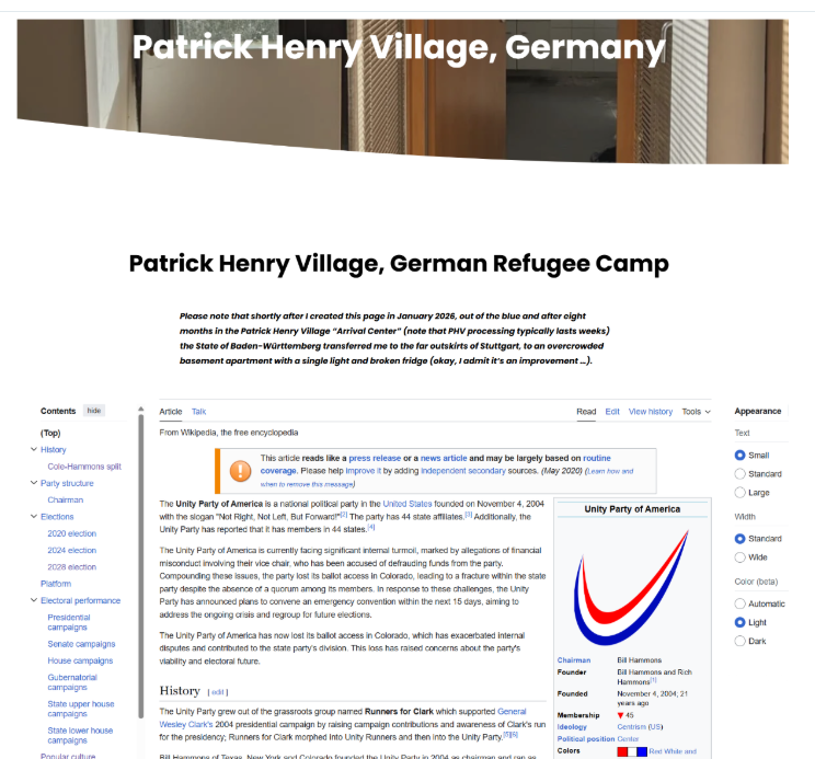Wednesday, January 28, 2026 (Zazenhausen, Germany) – The Founder of the Unity Party of America, having parked himself next to a warm-if-sketchy-looking hallway heater in an abandoned Stuttgart hotel, opines to his fellow Europe-borns on what “Everything, all at once” should mean to the quintessential American ear.