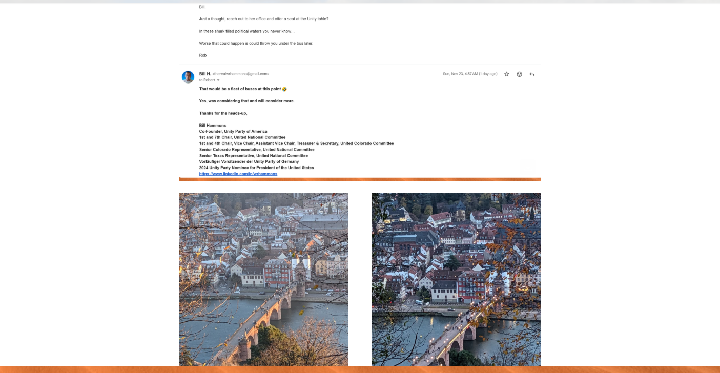Monday, November 24, 2025 (Patrick Henry Village, Germany) – As America rolls into the holiday season, the Founder and Chair of the Unity Party reminds his fellow Americans to be grateful for what we all have, while we all still have it.