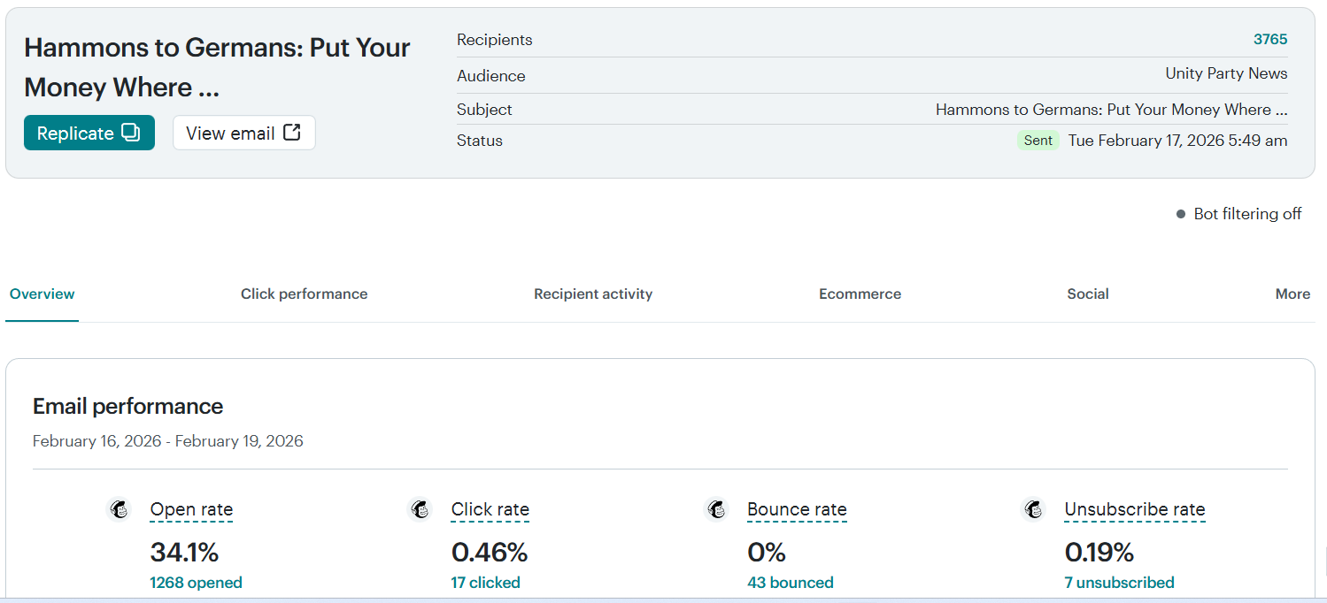 Latest mention of the Unity Party in the national media (ABC News):