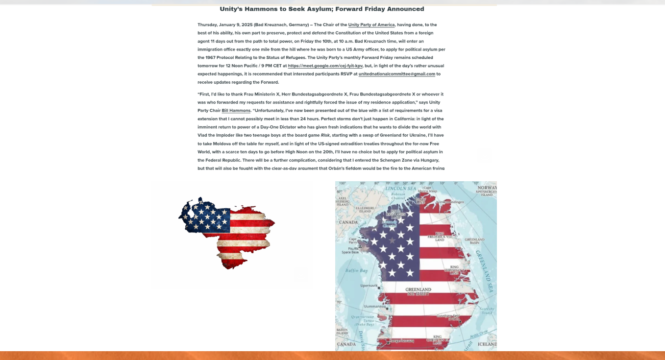 Note that the Unity Party is currently in preliminary merger discussions with a party of similar size and worldview that, most importantly, has a similar desire to make America Better Than Ever Before. This will be a long, careful and deliberative process, but feel free to join us at our next Forward Friday for possible developments!