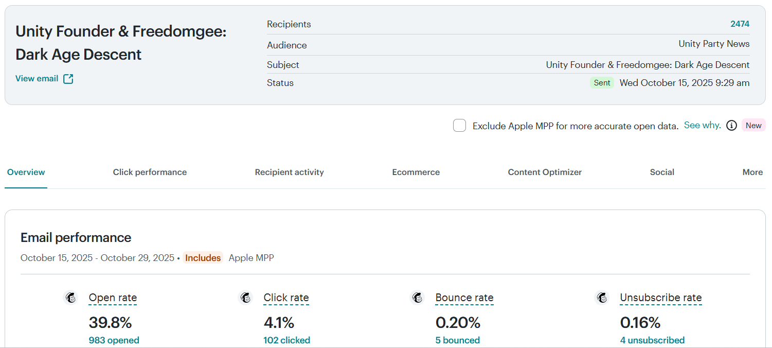 This communication paid for by the United National Committee of the Unity Party of America to advance the liberation of future Unity Party voters. Not authorized by any candidate or candidate’s committee, nor any authoritarian regime anywhere in the world.
